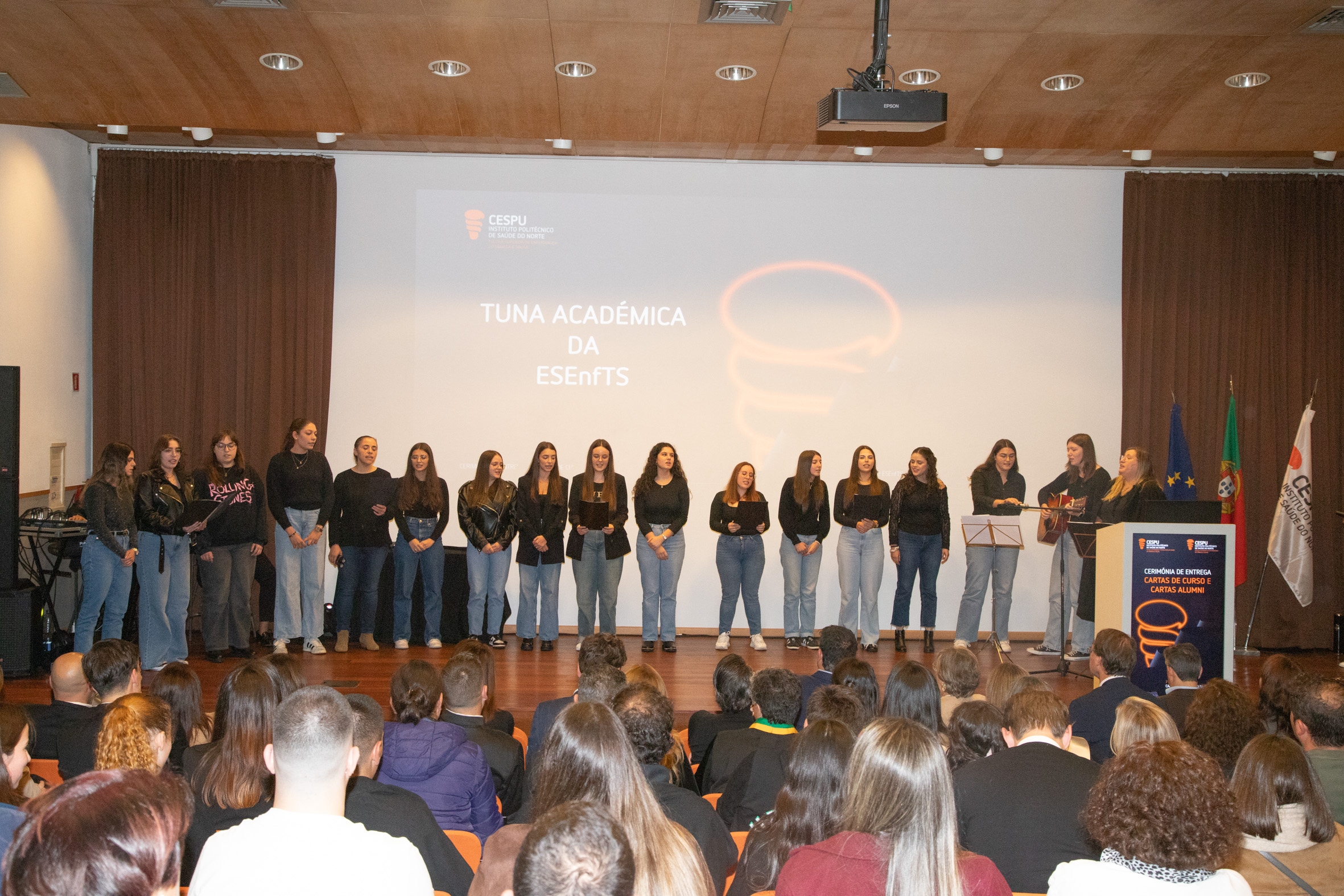 A cerimónia foi presidida pela Diretora da ESTeSTS, Prof.ª Doutora Raquel Esteves, pela Diretora da ESEnfTS, Prof.ª Doutora Clarisse Magalhães, e pelo Prof. Doutor José Manuel Mendes, em representação do Conselho de Administração da CESPU.
