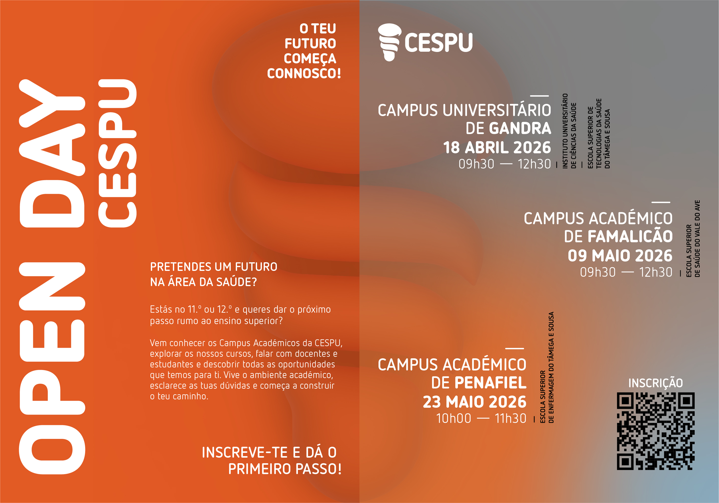 A CESPU vai realizar, os seus Open Days nos diferentes campus académicos, abrindo as portas a estudantes, famílias e orientadores vocacionais que pretendam conhecer de perto a sua oferta formativa e a sua comunidade académica.