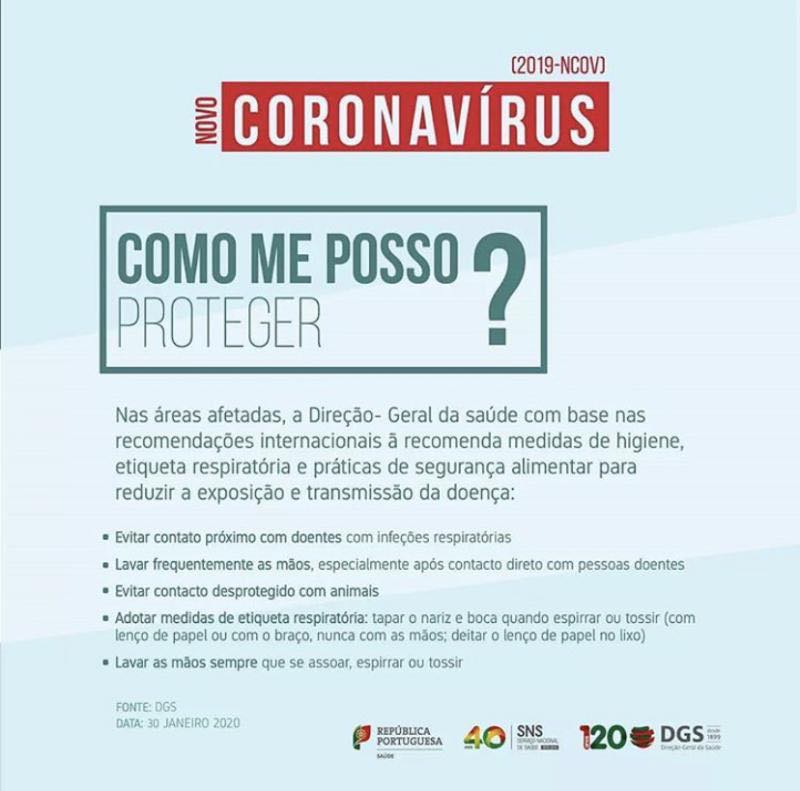 Informamos que estão a ser tomadas as medidas recomendadas pela Direção Geral de Saúde.